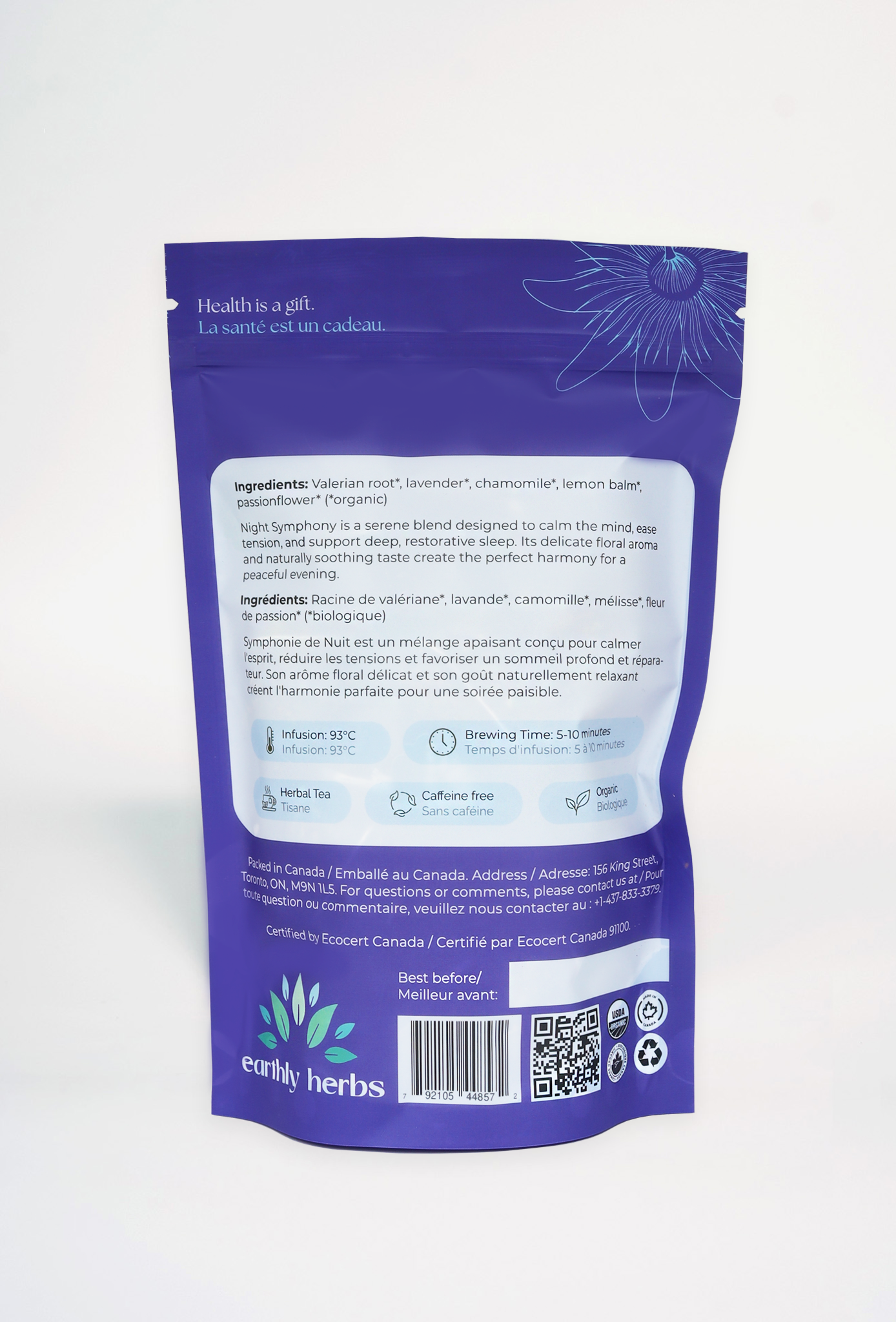 Embrace the tranquil notes of Night Symphony by Earthly Herbs, a curated blend of premium organic herbs hand-crafted to enhance your evening unwind. This caffeine-free herbal tea invites you to savor gentle, floral-infused sips as part of a calming ritual, featuring a harmonious mix of natural ingredients that deliver a soothing, aromatic experience to close your day on a peaceful note.