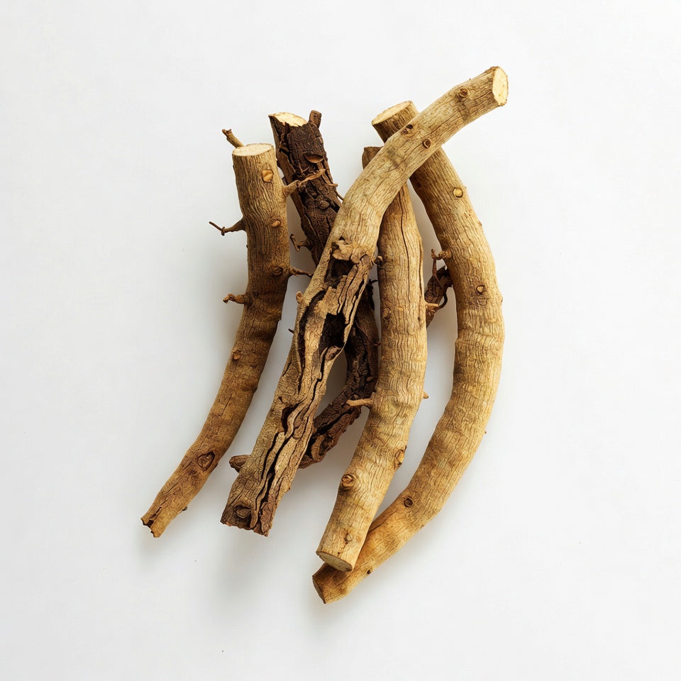 Earthy ashwagandha root lends a grounding, subtly bitter warmth drawn from ancient Ayurvedic gardens.