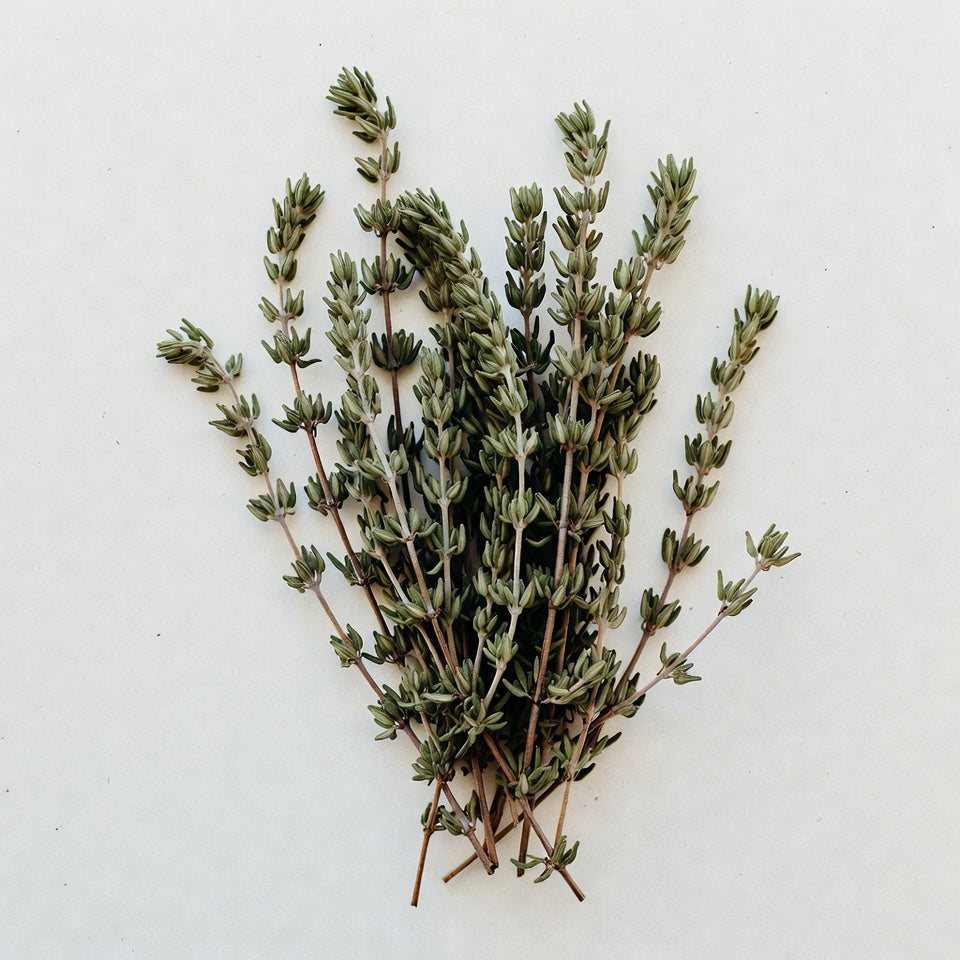 Aromatic thyme herbs infuse a warm, savory spice, reminiscent of Mediterranean garden breezes.